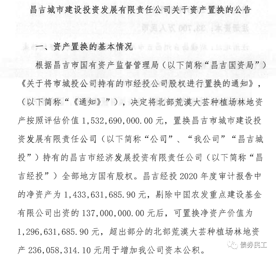 換公司的全資子公司昌吉市經(jīng)濟(jì)發(fā)展投資有限責(zé)任公司的股