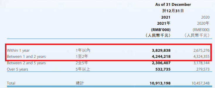 其中,一年期的債務(wù)超38億元,2020年末時(shí)該數(shù)字為不到27億元。