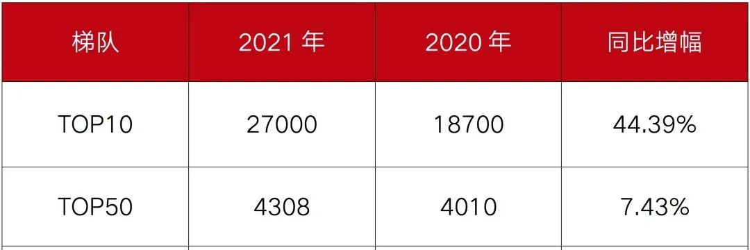 01 2021年物企TOP10門檻值同比上升44%