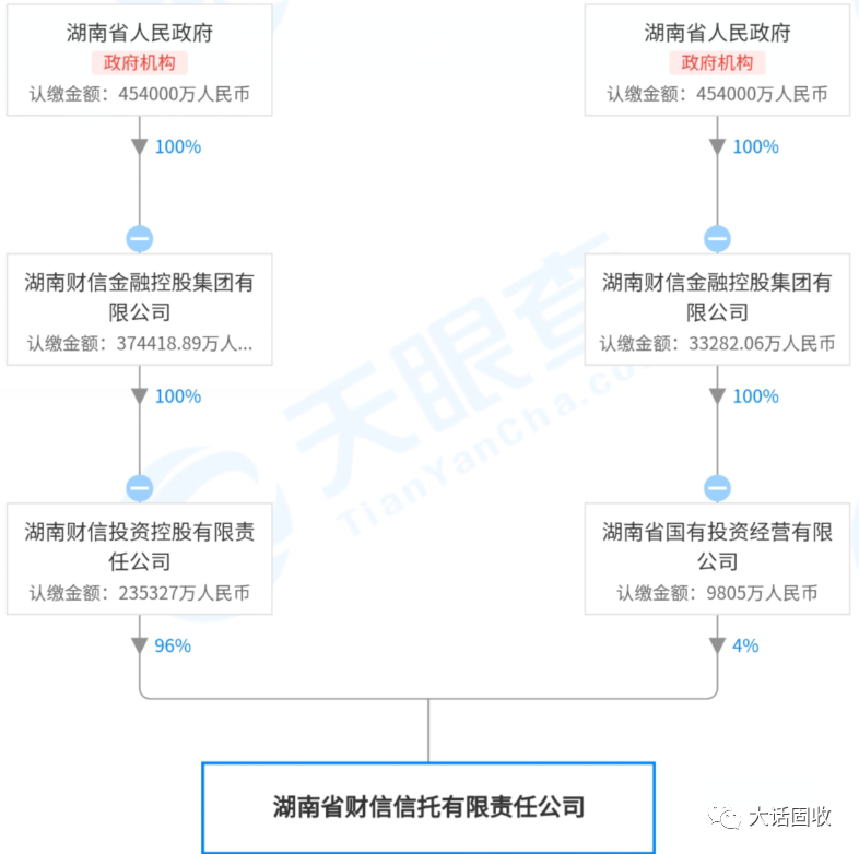 財信信托隸屬于湖南財信金控,后者為湖南省政府直接控股企業。事實上,在財信信托更名同月,有幾家齊刷刷一起改名了: