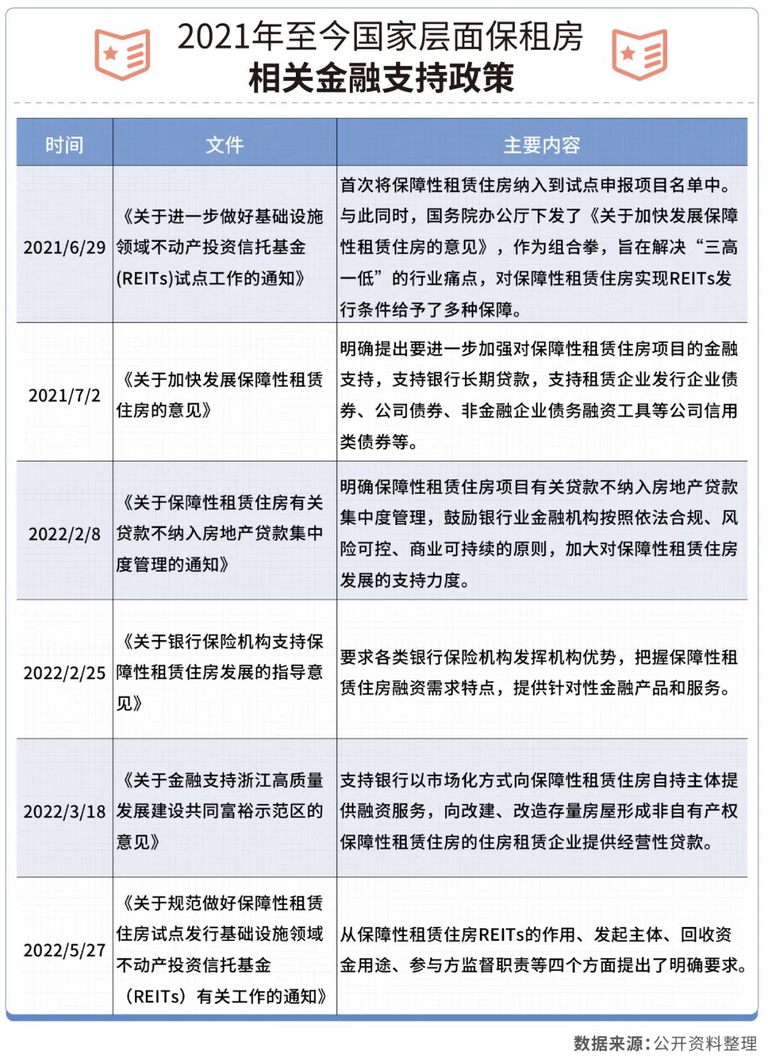 除此之外,政策端還支持銀行長期貸款,支持租賃企業發行企業債券、公司債券、非金融企業債務融資工具等公司信用類債券等;明確保租房項目有關貸款不納入房地產貸款集中度管理;支持各類銀行保險機構發揮機構優勢,把握保障性租賃住房融資需求特點,提供針對性金融產品和服務。