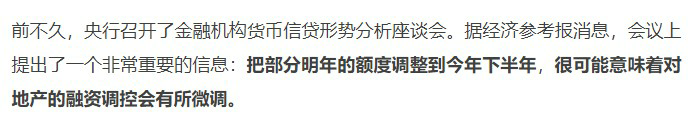 此前《經(jīng)濟(jì)參考報》談到某會上,央行提到明年的貸款額度今年給一部分。