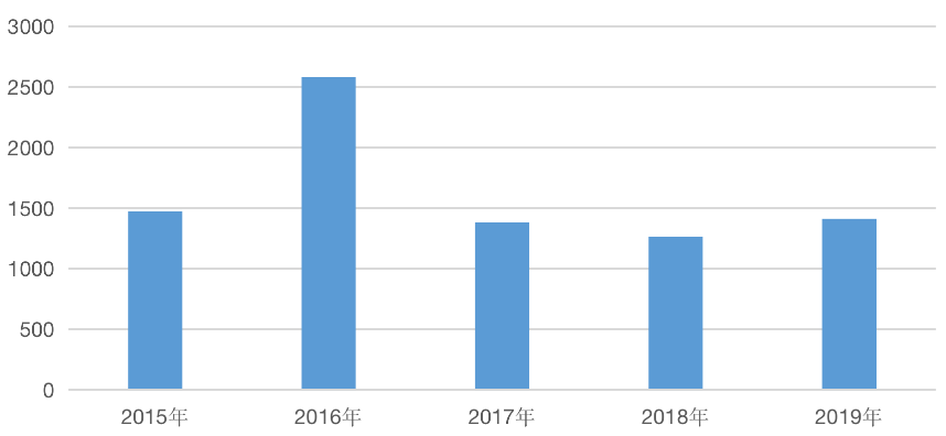 天津新房市場(chǎng)成交面積年度變化(單位:萬(wàn)m2)