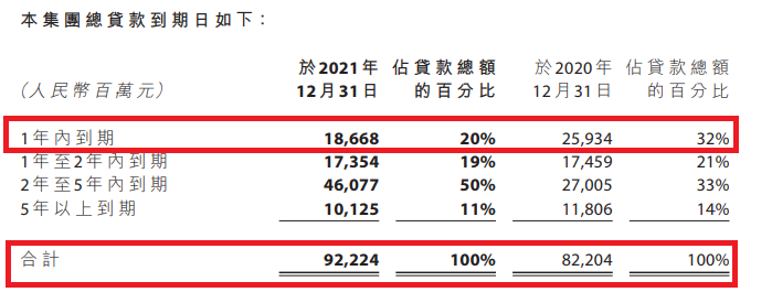 而2-5年內期的貸款超460億元,2020年末時為270億元。中長期貸款的占比顯著提高,債務結構明顯改善。