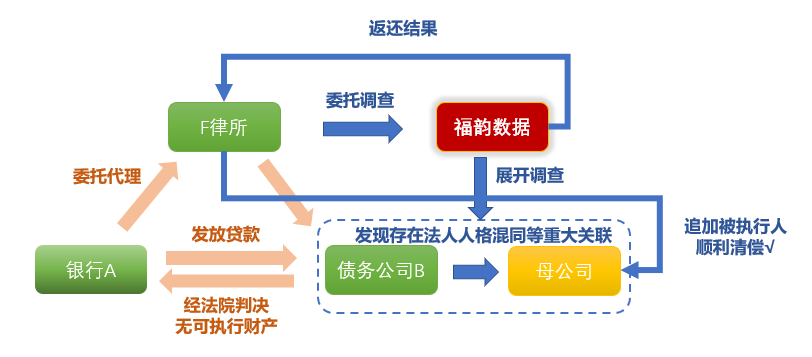 最終,福韻數據憑借卓越的情報分析能力,對案件的關聯關系進行了深入調查,挖掘出的重要證據為此案的勝訴提供強有力的支撐,最終獲得法院的支持,追加母公司償還債務的判決,委托方A公司順利追回高達6億的巨額債務。