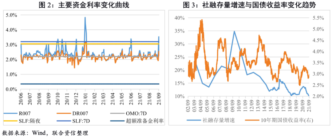 9月資金面先緊后松總體保持平穩,資金利率先升后降,利率均值小幅上行。進入9月,受中秋、國慶雙節臨近以及季末資金需求旺盛等因素影響,主要資金利率于9月中上旬普遍上行。為維護季末流動性平穩,央行于9月15日開展6000億元MLF操作,為2021年7月降準后首次對MLF的等量續作,隨后于9月17日重啟14天逆回購,同時增加7天逆回購投放量,帶動資金利率下行。9月23日央行召開電視會議,提出“要發揮好新增3000億元支小再貸款額度的積極作用,引導地方法人金融機構積極主動對接小微企業融資需求,加快貸款投放進度”,24日央行貨幣政策委員會第三季度例會召開,重申“用好新增3000億元支小再貸款額度,支持增加小微企業和個體工商戶貸款”,釋放出結構性寬信用將加速推進的信號。在結構性寬信用政策支持下,疊加地方政府債加速發行,四季度社融增速或將觸底反彈。10月將面臨8400億元的14天逆回購到期、繳稅高峰以及地方政府債加速發行對流動性的擾動,對資金面帶來一定壓力;同時銀行理財產品估值從攤余成本法到公允價值法切換已拉開序幕,二級資本債、永續債遭遇拋售的同時加大了銀行資本補充工具的發行難度,銀行資本補充壓力加大,債市配置需求或將下降。受以上因素共同影響10月利率債收益率或將小幅上行。