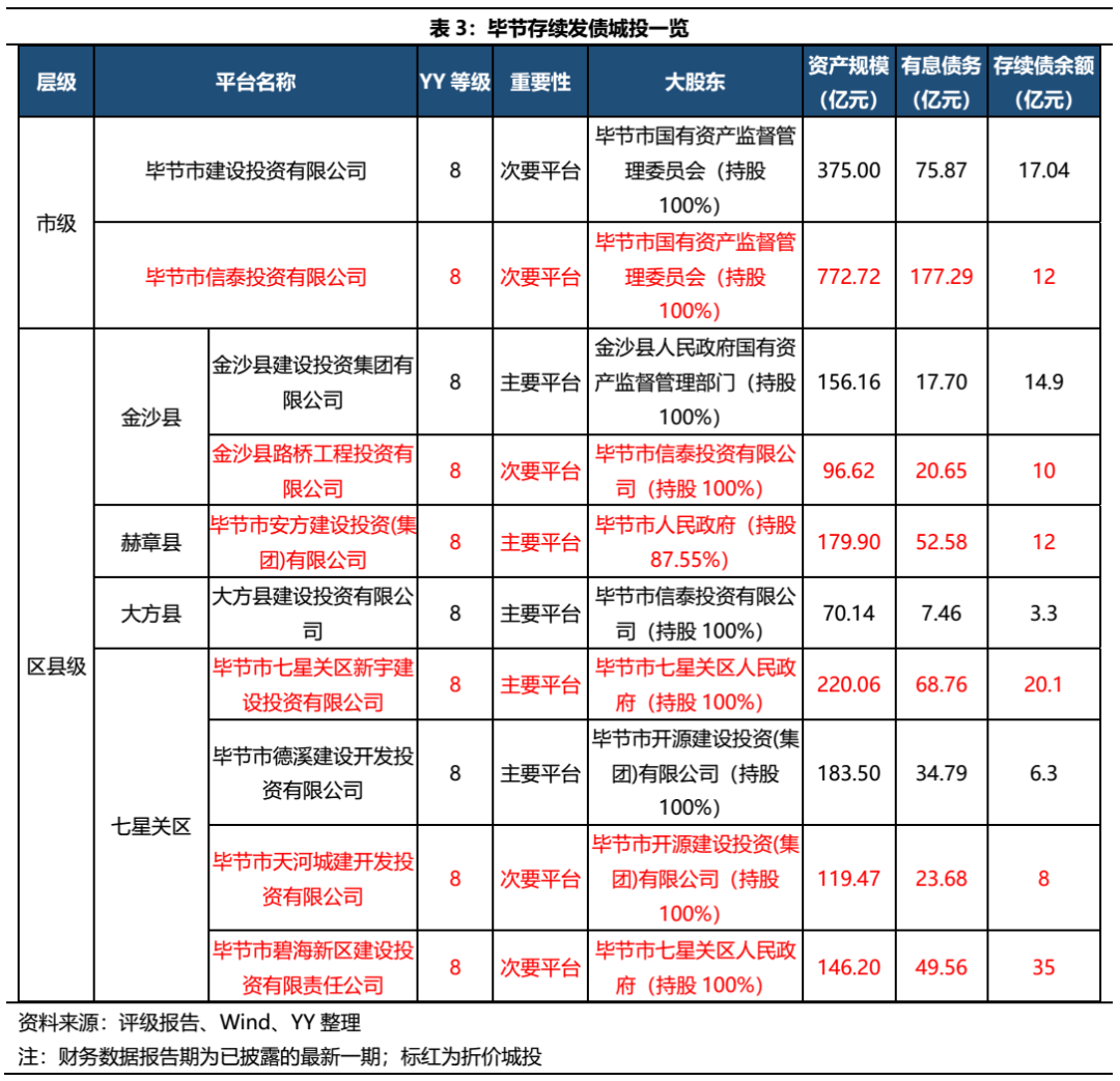 畢節現有存續債的平臺共10家,其中6家出現折價成交,分布在市級、金沙縣、赫章縣以及七星關區。