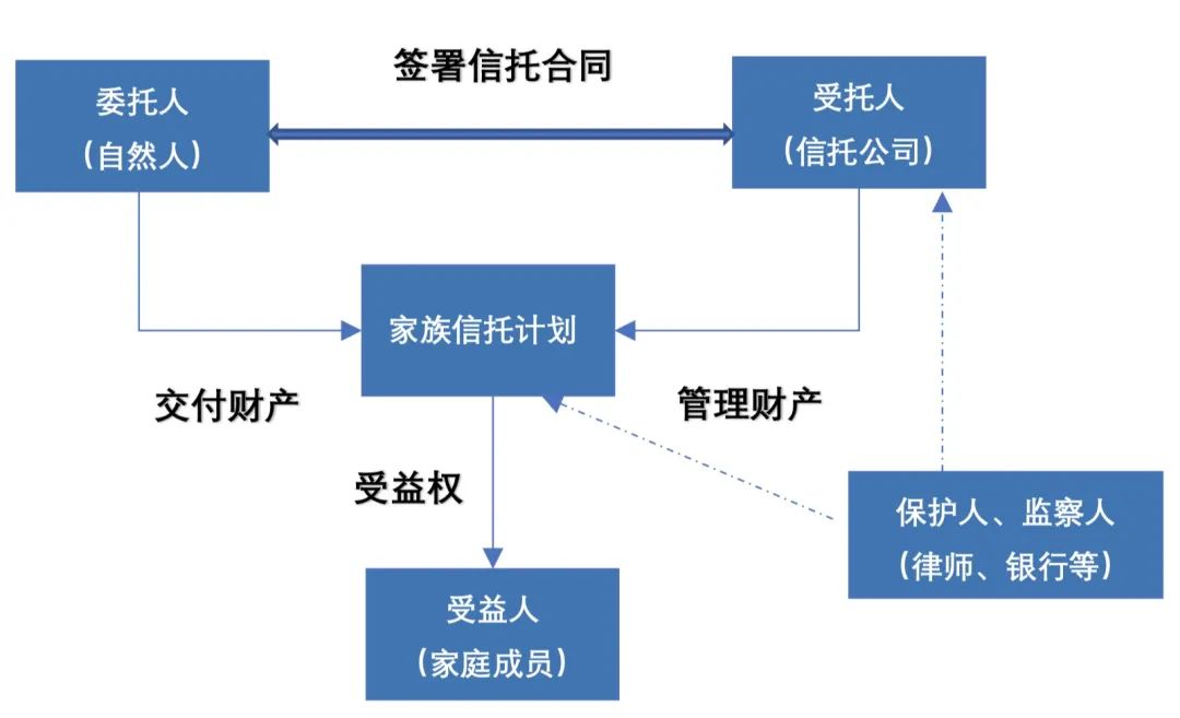 家族信托的基本法律關(guān)系與一般的資金信托沒有太大的區(qū)別。家族信托當事人主要為委托人、受托人、受益人。
