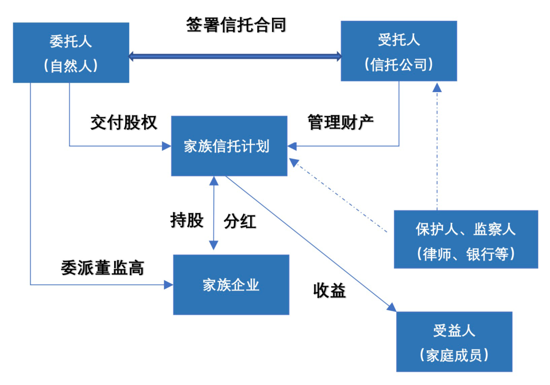 根據(jù)《信托法》第14條的規(guī)定,股權(quán)信托不僅包括以股權(quán)為標的而設(shè)立的信托,還包括以資金財產(chǎn)為標的而設(shè)立,期間受托人通過收購或者增資,將資金信托財產(chǎn)轉(zhuǎn)化為有限合伙企業(yè)份額、控股公司股權(quán)、股權(quán)投資基金份額等方式設(shè)立的信托。具體而言,股權(quán)家族信托就是將委托人擁有的公司股權(quán)或?qū)①Y金信托財產(chǎn)轉(zhuǎn)化為有限合伙企業(yè)份額、控股公司股權(quán)、股權(quán)投資基金份額等,并作為信托財產(chǎn)放入家族信托中進行管理保護,以達到隔離債務(wù)、延稅節(jié)稅、離婚保護、身后傳承及多代保障的目的的信托計劃。
