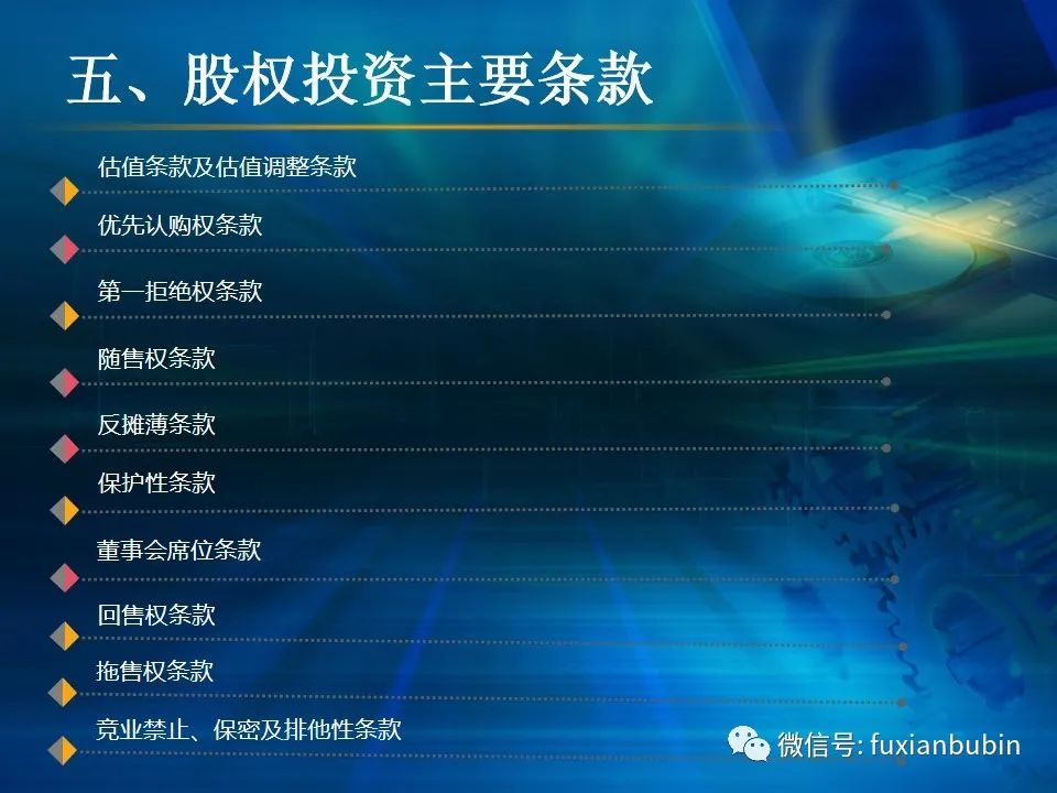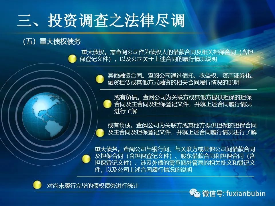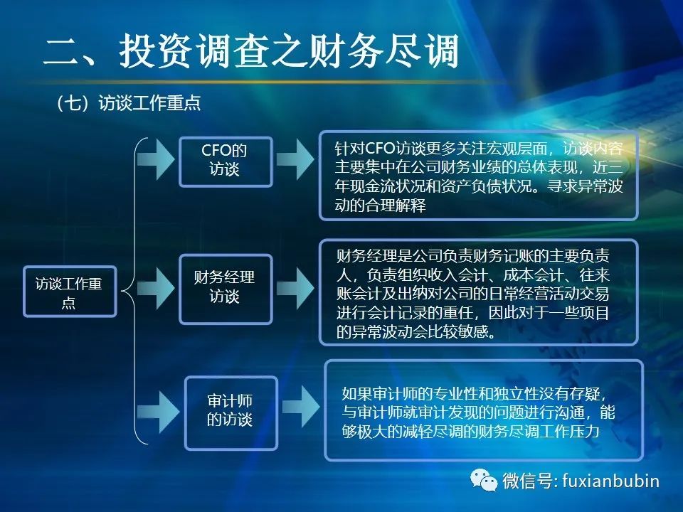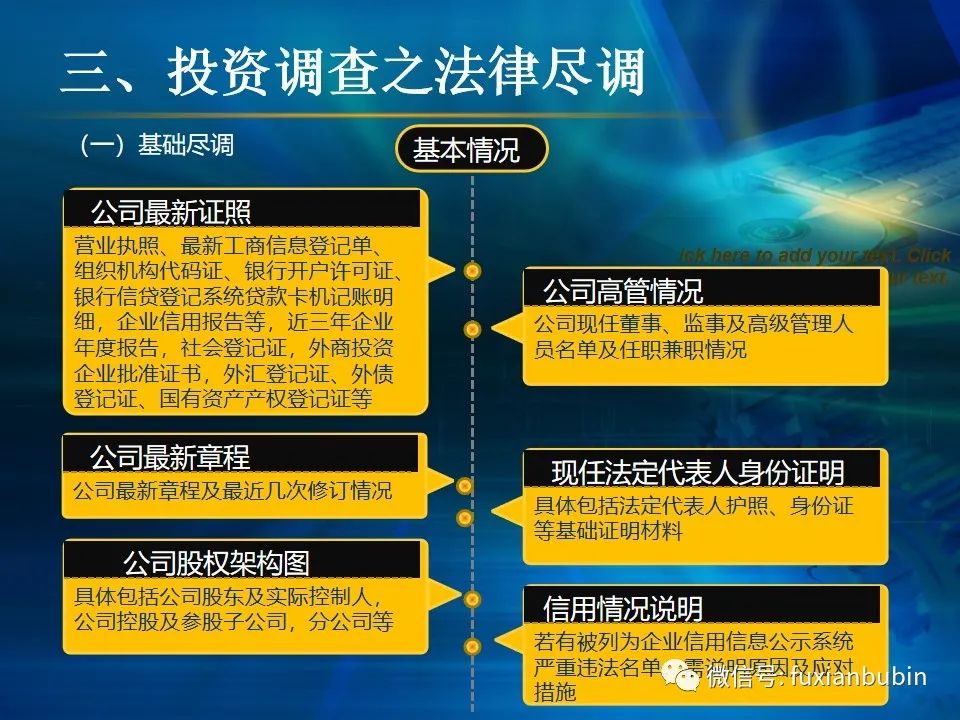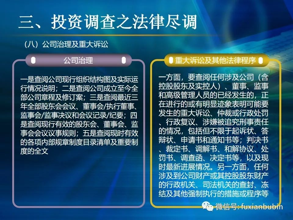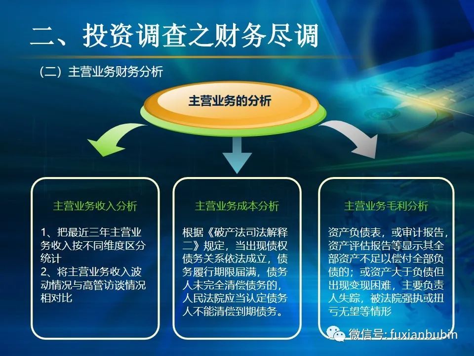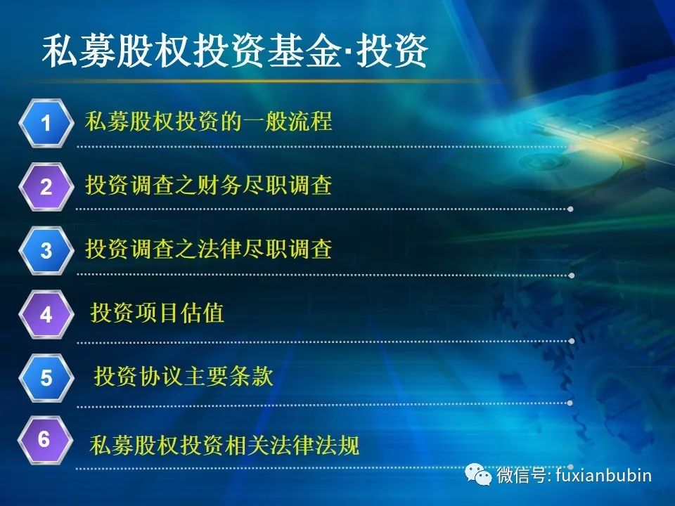 私募股權投資基金的投資工作,其業務流程主要圍繞投資決策開展,通常包括項目開發與篩選,初步盡職調查,項目立項、簽訂框架投資協議、盡職調查、投資決策、簽署投資協議、投資交割等主要環節。在這一過程中,財務盡調主要關注目標公司的歷史財務業績的情況,并對未來財務狀況進行合理預測。調查內容包括企業的歷史經營業績,未來盈利預測、營運資金、融資結構、資本性開支以及財務風險敏感度分析等。其作用在于為投資及整合方案設計、交易談判、投資決策提供支撐,進而判斷投資是否符合戰略目標及投資原則。法律盡職調查是對相關法律事務具有法律意義的背景資料進行應有的調查,使相關法律事務的處理建立在客觀、全面的信息基礎之上,以確保相關法律事務的處理能夠達到預期的結果,而不因相關信息在真實性、完整性、全面性、合法性等方面的原因影響預期目標的實現。經過財務盡調與法律盡調,在股權投資之前,需要考慮該項投資的性質、事實和背景,為之選擇恰當的估值方法,并結合市場參與者的假設,采用合理的市場數據和參數對目標公司進行估值,明確目標公司的公允價值。