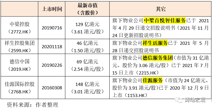 (二)均為港股上市地產(chǎn)企業(yè),旗下2家物業(yè)公司已上市、2家待上市