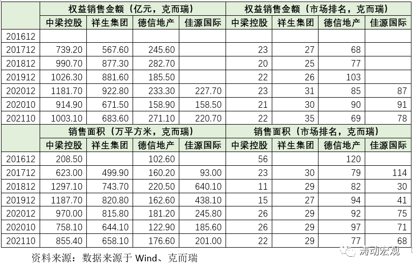 1、以今年1-10月權(quán)益銷售數(shù)據(jù)為例,排名從高到低依次為中梁控股(位列地產(chǎn)行業(yè)22強)、祥生集團(位列地產(chǎn)行業(yè)35強)、德信地產(chǎn)(位列地產(chǎn)行業(yè)69強)以及佳源國際(位列地產(chǎn)行業(yè)78強)。