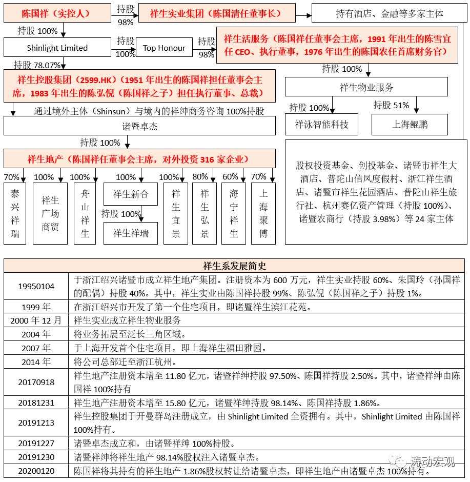 1、祥生系的實控人為陳國祥家族,包括陳國祥(1951年出生)、其子陳弘倪(1983年出生)、其女陳雪宜(1991年出生)、其弟陳國清和陳國農(nóng)等。