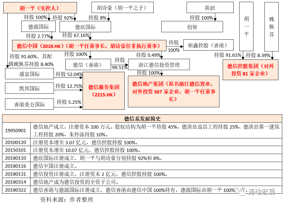 (三)德信系:湖州起家、實控人為胡一平家族,以四家主體為運作核心