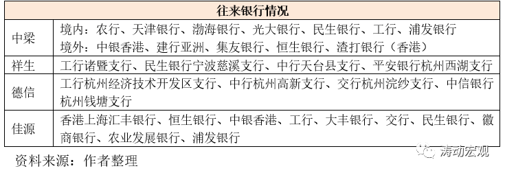 四家浙系地產(chǎn)企業(yè)均在其財報中披露了主要往來銀行,可以看出,國有大行與部分股份行多有支持,天津銀行、徽商銀行等城商行也多有介入,表明這四家企業(yè)在融資上對傳統(tǒng)銀行渠道較為依賴。