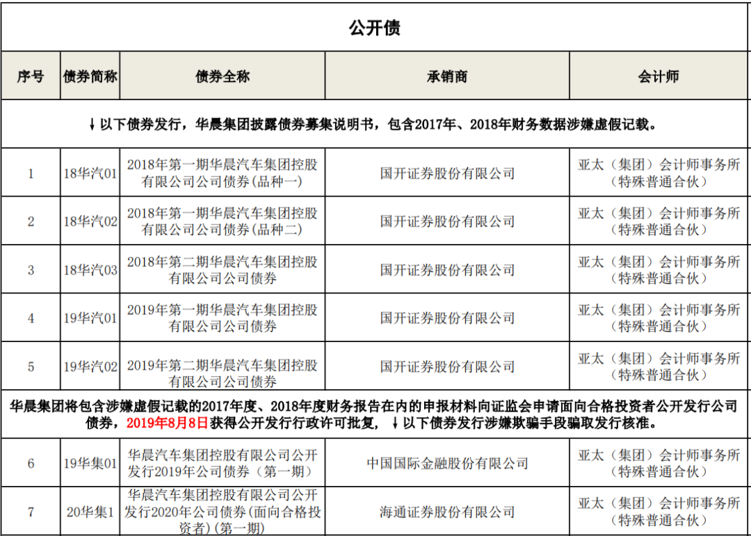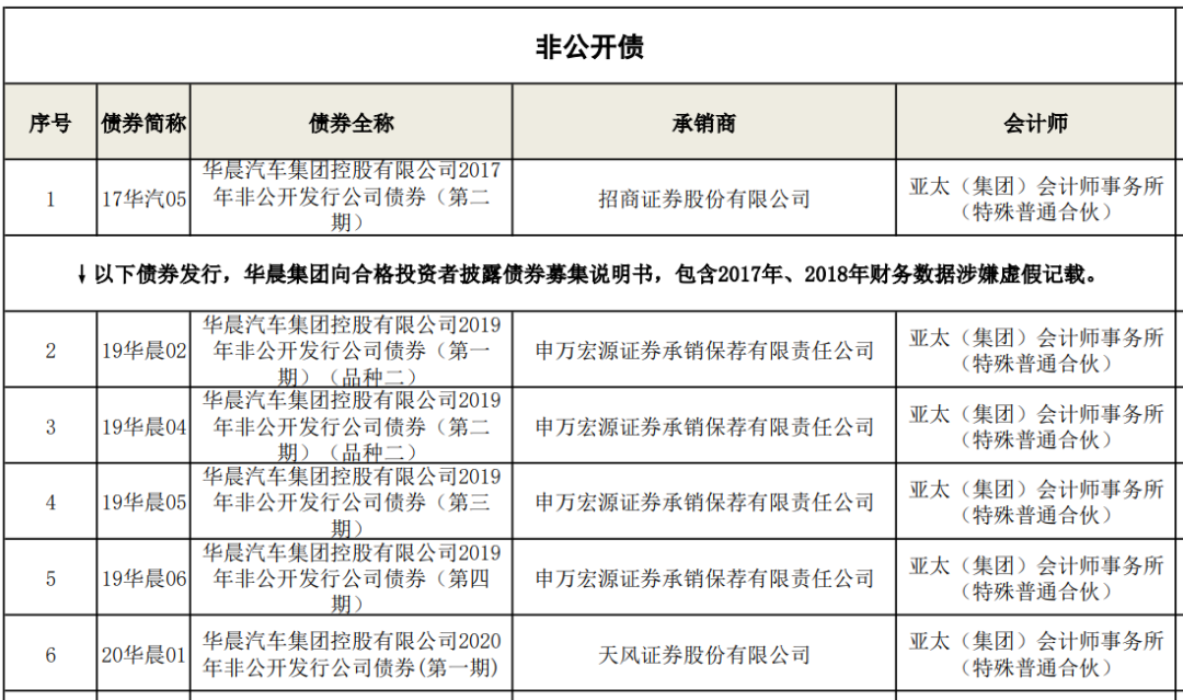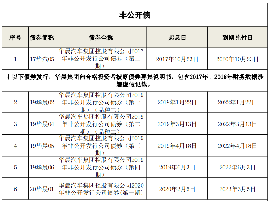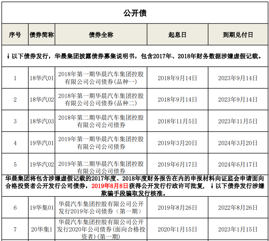 根據我們的不完全統計, 目前華晨集團仍存續13只債券未完全兌付, 從債券發行和存續時間上來看, 發行于2018年4月28日(2017年年報的發布之日)之后的債券均在募集說明書中直接引用和摘取了2017年、2018年(如有)年度報告中的財務數據, 而發行于2018年4月28日之前的債券在其存續期間同樣引用了上述財務數據并進行了信息披露。因此, 如下述列舉的債券沒有遺漏, 我們其實可以較為大膽地說, 目前存續的華晨集團債券均存在虛假信息陳述的問題, 債券持有人可以基于華晨集團的債券虛假陳述嘗試主張賠償責任。