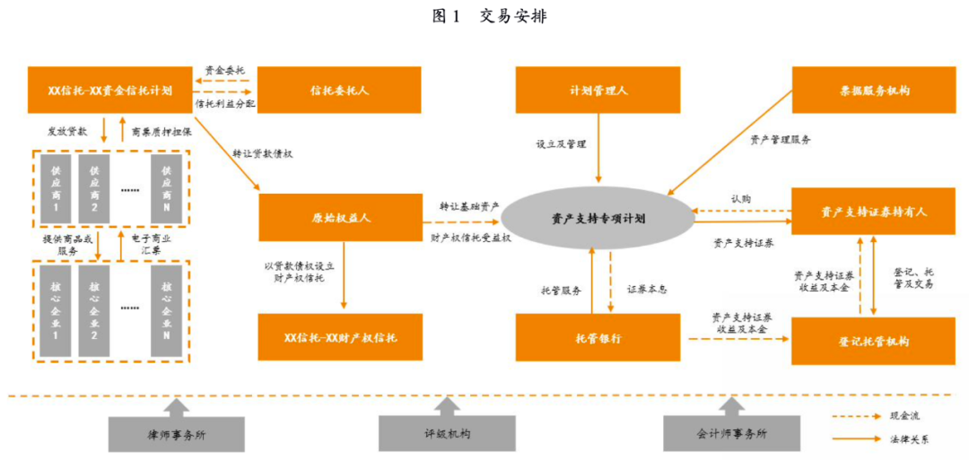 結(jié)合上文所分析的電子商票類(lèi)資產(chǎn)的自身優(yōu)勢(shì),我們可以通過(guò)對(duì)資產(chǎn)證券化業(yè)務(wù)中交易結(jié)構(gòu)部分進(jìn)行針對(duì)性的設(shè)計(jì),進(jìn)一步“因材施策”,降低資產(chǎn)支持證券所面臨的風(fēng)險(xiǎn)。
