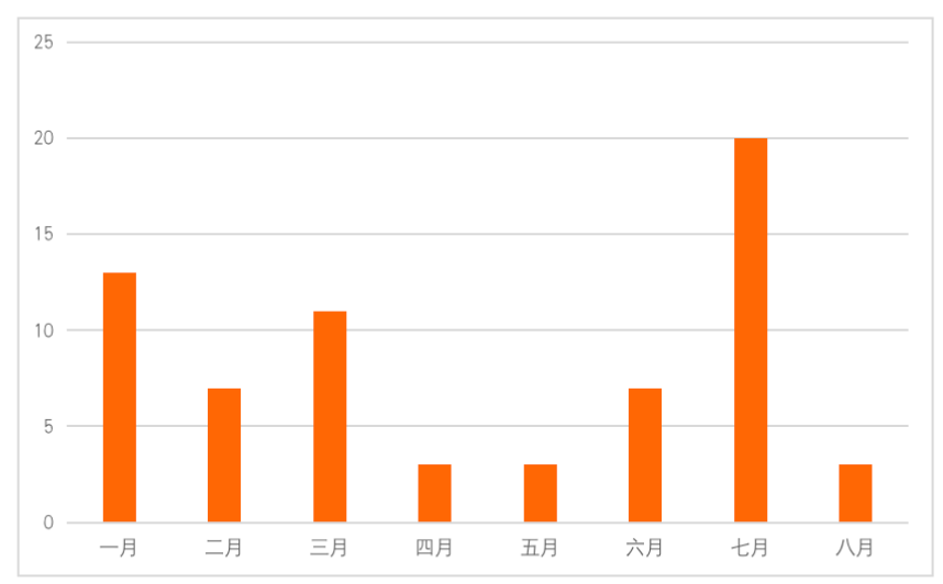 圖2 2021年中國企業赴港上市月份統計(個)