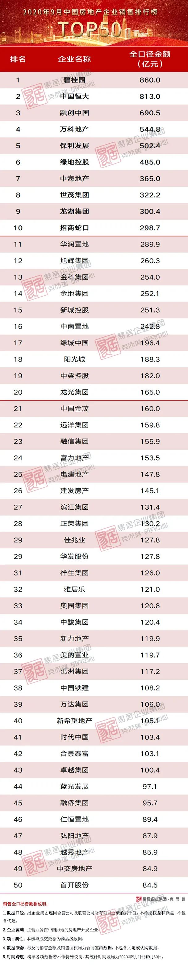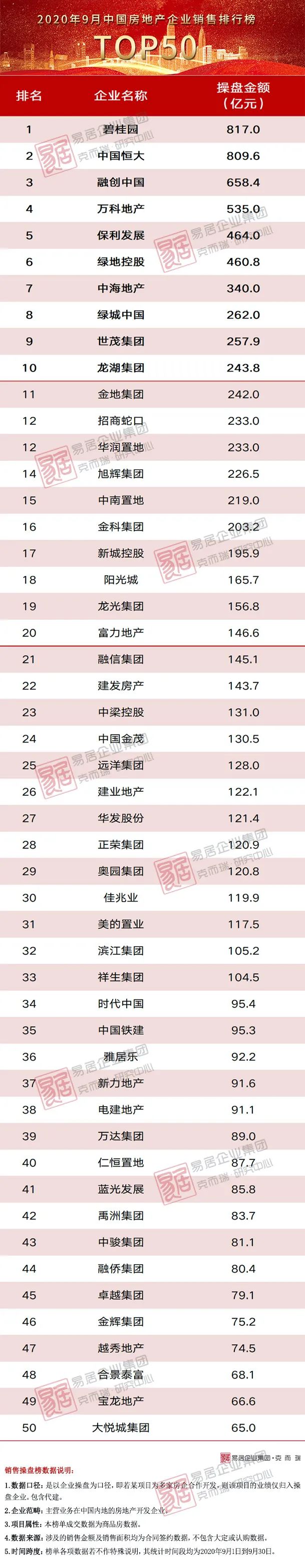 圖:2020年1-9月百強房企銷售操盤金額