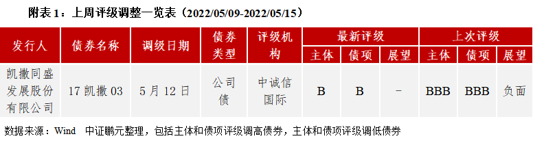1. 上周債券評(píng)級(jí)負(fù)面調(diào)整1只