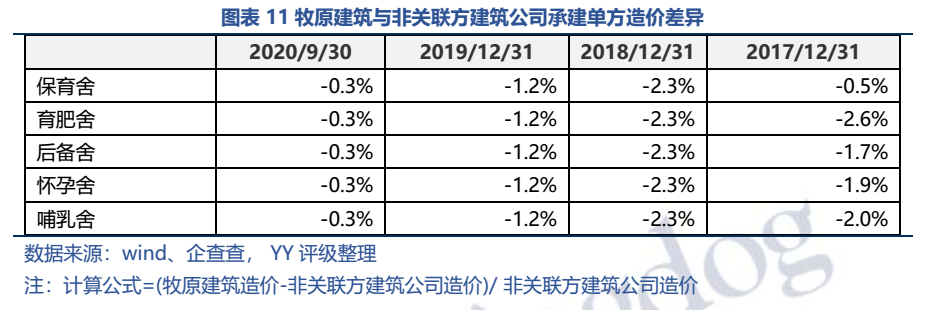 按照牧原的回復,牧原建筑的工程造價和非關聯建筑商的工程造價不差上下,所以牧原建筑并沒有占上市公司的便宜。