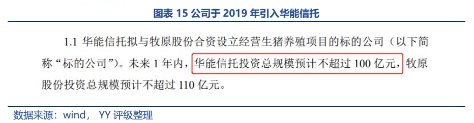 華能貴誠信托是19年引進的,擬與公司合資建設養殖項目不超100億元。