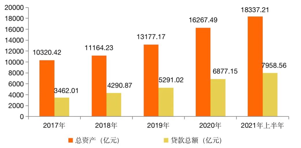 統(tǒng)計(jì)數(shù)據(jù)顯示,寧波銀行的資產(chǎn)規(guī)模從2017年的10320.42億元增長(zhǎng)至2021年上半年的18337.21億元,增幅達(dá)到近八成。與此同時(shí),貸款總額也從3462.01億元增長(zhǎng)至7958.56億元,增幅實(shí)現(xiàn)1.3倍,可見近年來保持穩(wěn)健的增長(zhǎng)態(tài)勢(shì)。
