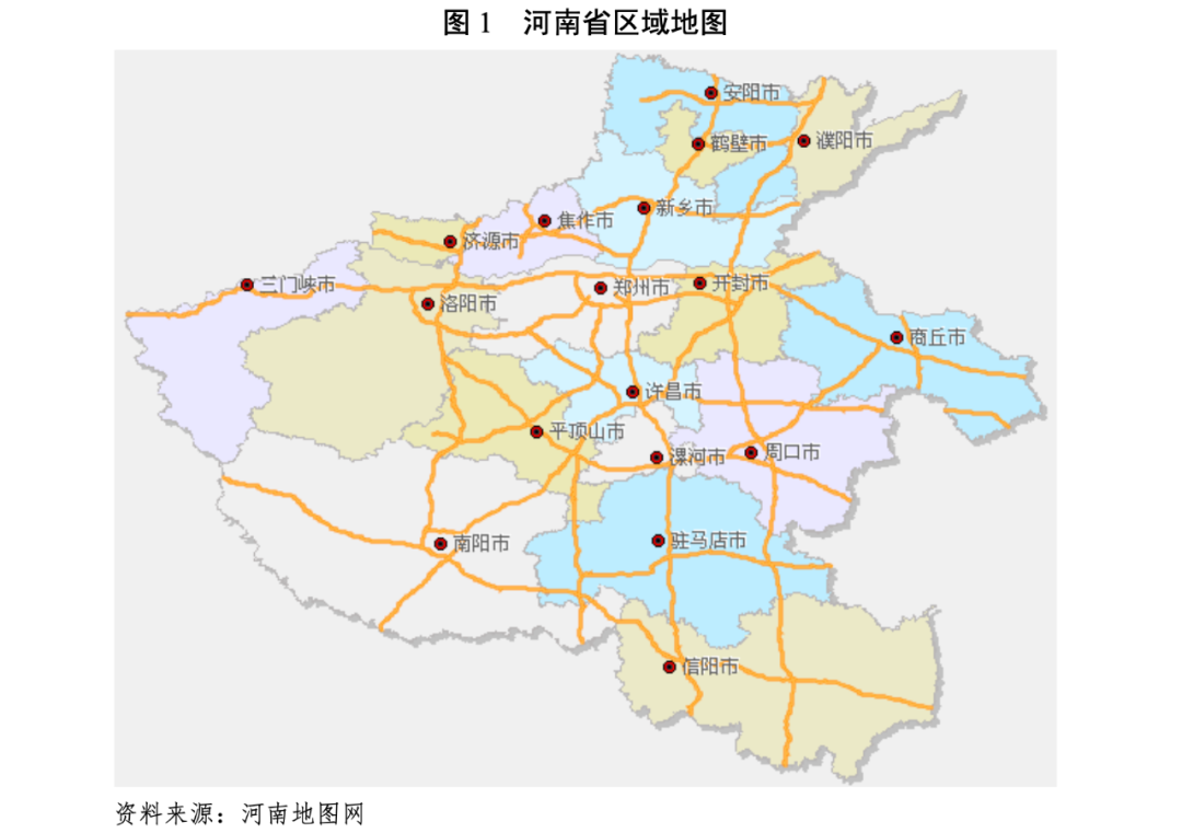 河南省,簡稱“豫”,位于我國中東部、黃河中下游,東接安徽、山東,北界河北、山西,西連陜西,南臨湖北,素有“九州腹地、十省通衢”之稱。河南省區(qū)位優(yōu)勢突出,是全國重要的交通樞紐和物資集散地。河南省總面積16.7萬平方公里,占全國總面積的1.73%。地勢西高東低,平原盆地、山地丘陵分別占總面積的55.7%和44.3%。河南省礦產(chǎn)及人口資源豐富,鉬、金、珍珠巖等多種礦產(chǎn)資源儲量居全國前列,礦業(yè)產(chǎn)值連續(xù)多年位居全國前5位。根據(jù)第七次全國人口普查結(jié)果,截至2020年11月1日零時,河南省全省常住人口共計9936.6萬人,占全國人口的7.04%,位居全國第三。與2010年第六次全國人口普查數(shù)據(jù)相比,十年共增加534.2萬人,增長5.68%,年平均增長率為0.55%,人口保持平穩(wěn)增長態(tài)勢。河南省下轄鄭州、洛陽、開封等17個地級市、1個省直管市(濟(jì)源市)、21個縣級市、83個縣以及53個市轄區(qū),省會為鄭州市。河南省是我國重要的經(jīng)濟(jì)大省、全國農(nóng)產(chǎn)品主產(chǎn)區(qū)、工業(yè)生產(chǎn)基地,隨著中國(河南)自由貿(mào)易試驗區(qū)、中原城市群、鄭洛新國家自主創(chuàng)新示范區(qū)等戰(zhàn)略的推進(jìn),河南省不斷加快產(chǎn)業(yè)結(jié)構(gòu)優(yōu)化調(diào)整、全方位推進(jìn)對外開放、積極擴大有效需求、加大重點領(lǐng)域投資力度,近年來整體經(jīng)濟(jì)保持平穩(wěn)較快增長。