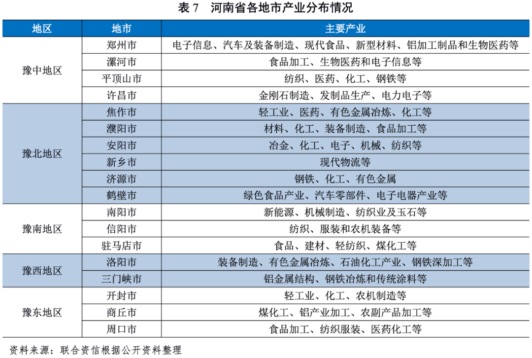 2020年以來,河南省出臺了一系列推動經(jīng)濟(jì)高質(zhì)量發(fā)展的政策措施,涉及農(nóng)業(yè)發(fā)展、財政體制改革、優(yōu)化營商環(huán)境、促進(jìn)災(zāi)后恢復(fù)、規(guī)范政府投資和金融支持等方面,為經(jīng)濟(jì)增長和產(chǎn)業(yè)結(jié)構(gòu)優(yōu)化創(chuàng)造了有利條件。河南省三次產(chǎn)業(yè)結(jié)構(gòu)由2018年的8.9:45.9:45.2調(diào)整為2020年的9.7:41.6:48.7,產(chǎn)業(yè)結(jié)構(gòu)更趨優(yōu)化。2020年,河南省全年規(guī)模以上工業(yè)增加值同比增長0.4%,增速較上年有所下降。其中,戰(zhàn)略性新興產(chǎn)業(yè)工業(yè)增加值同比增長2.6%,占規(guī)模以上工業(yè)的22.4%;高技術(shù)制造業(yè)工業(yè)增加值同比增長8.9%,占規(guī)模以上工業(yè)的46.2%。固定資產(chǎn)投資方面,2020年,河南省全年固定資產(chǎn)投資同比增長4.3%,增速較2019年的8.0%有所放緩,高于全國增速(2.7%)1.6個百分點。