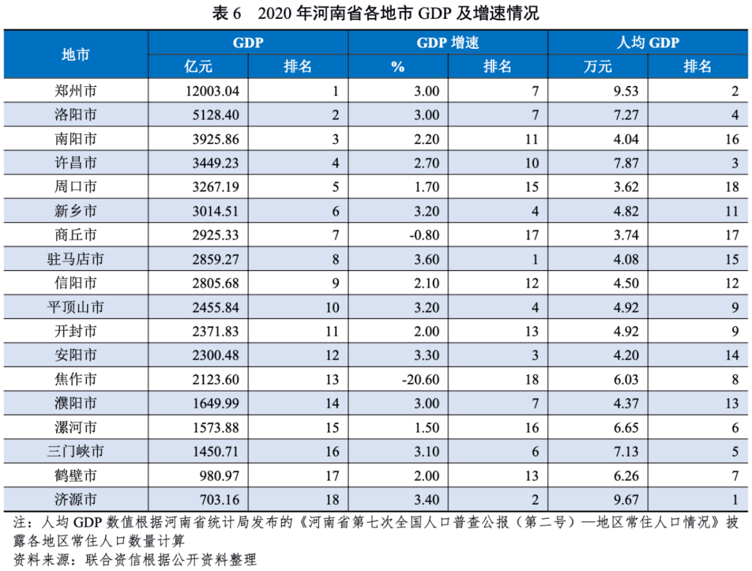 從GDP增速來看,2020年,鄭州市、洛陽市和駐馬店市等9個地市GDP增速達(dá)到3.00%及以上,駐馬店市GDP增速最高,為3.60%;許昌市、南陽市和信陽市等7個地市GDP增速介于1.50%~2.70%之間;商丘市和焦作市GDP呈負(fù)增長,其中焦作市GDP增速最低,為-20.60%。