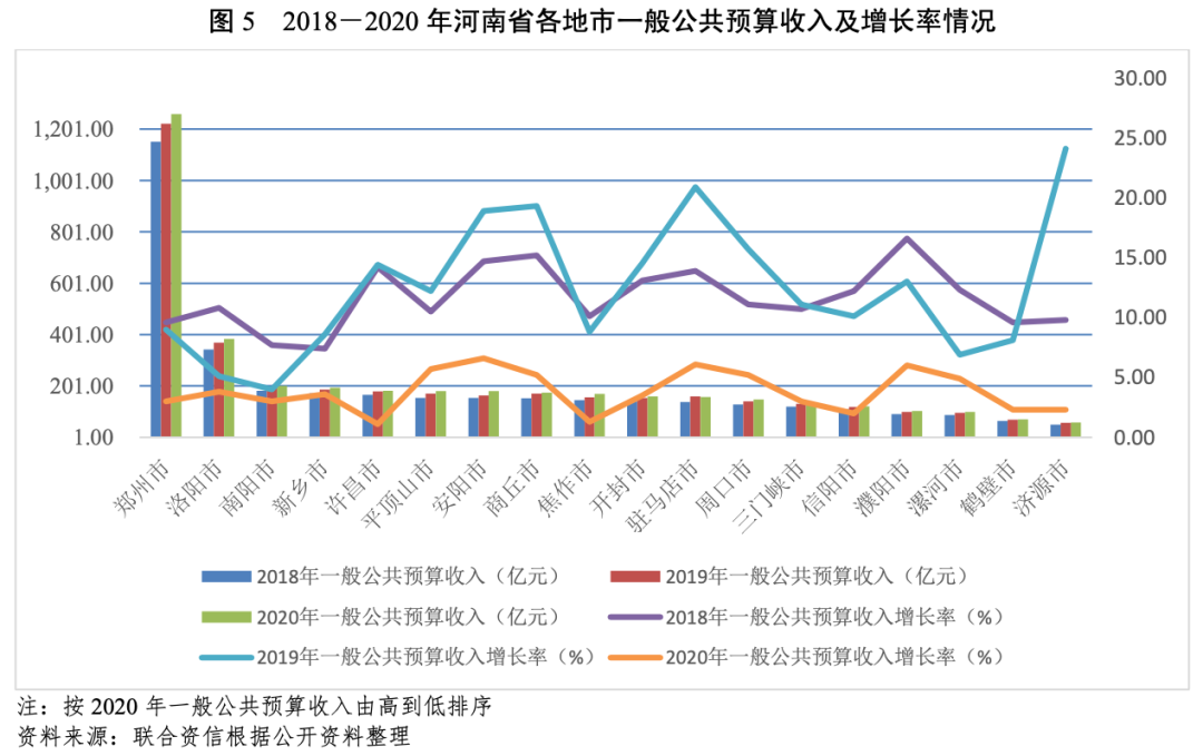從地市層面看,河南省下轄各地市經(jīng)濟(jì)發(fā)展和財力水平分化較為明顯,整體呈“中心強、四周弱”的發(fā)展格局,鄭州市作為省會城市和全省經(jīng)濟(jì)中心,GDP規(guī)模較大且保持穩(wěn)定增長,其他地市經(jīng)濟(jì)發(fā)展水平與之差距較大。河南省各地市一般公共預(yù)算收入穩(wěn)定性較強,除鄭州市、濟(jì)源市和洛陽市以外,其他各地市財政自給能力較弱。2018-2020年末,河南省各地市政府債務(wù)余額均呈上升趨勢,其中,信陽市、駐馬店市、許昌市和焦作市等地市債務(wù)余額增速較快。截至2020年底,河南省各地市政府負(fù)債率較上年底均有所增長,河南省各地市政府債務(wù)負(fù)擔(dān)處于尚可和較輕水平,但政府債務(wù)率差異較大。