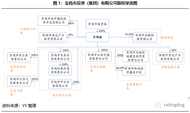寶雞市投資(集團)有限公司(下稱“寶雞投”或“公司”)是寶雞市唯一的地市級主要城投平臺。公司業務以包含寶雞市城區供熱、供水、公交服務的公用事業為主,在寶雞市具有壟斷地位,整體盈利能力較弱,持續受到政府補貼支持,其作為地市級主要平臺,具備了點、線、面三位一體的特征。